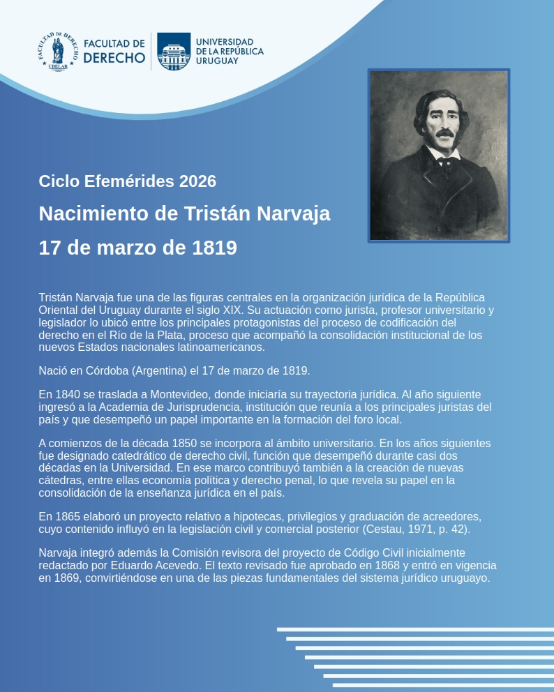 comment_bank Efemérides FDER. Clotilde Luisi Creación del Instituto de Derecho Agrario Tristán Narvaja